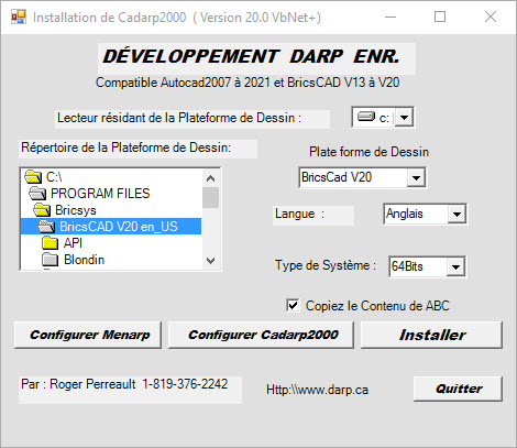Nouvelle Boîte de dialogue d'Installation de Cadarp/Menarp